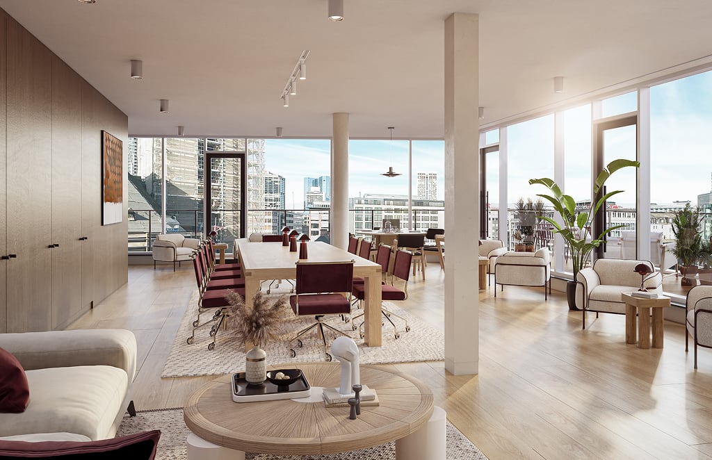 The Telemann offers 1,231 sqm of thoughtfully designed, flexible workspace – ideal for businesses of all sizes. With a mix of immediately available units and fully customisable space, tenants can shape their environment to suit their exact needs. Abundant natural light and intelligent floorplates make the Telemann perfectly suited for both hybrid working models and open-plan layouts – a future-focused space designed for productivity and comfort.