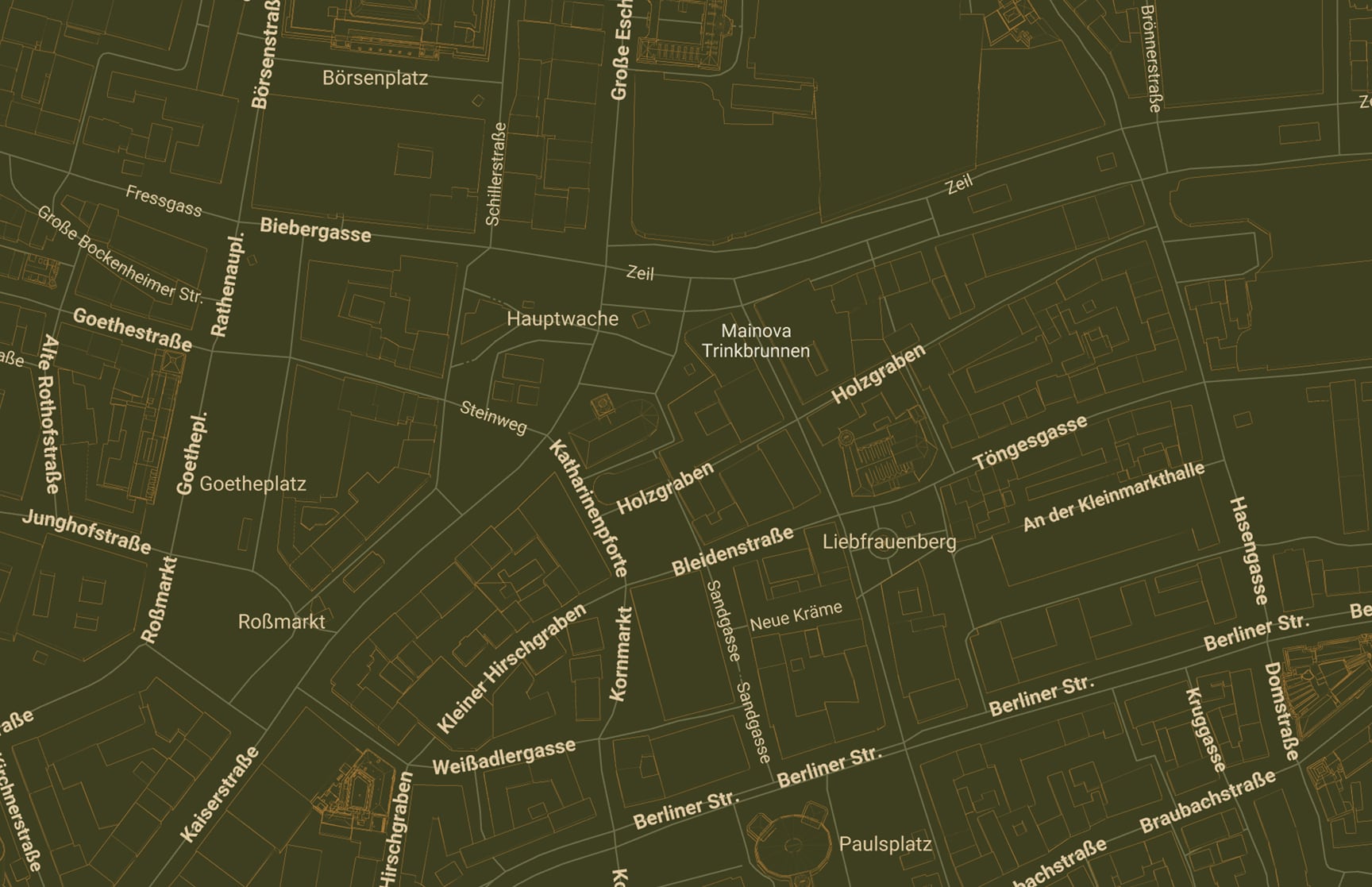 Perfectly positioned between Frankfurt’s main shopping street, Zeil, and the historic Hauptwache, the Telemann puts you at the centre of the city’s energy. Key destinations like the banking district, Kleinmarkthalle, the Römer, and the river Main are all just a short walk away. With Hauptwache station quite literally on your doorstep, getting around the city – or to the airport – couldn’t be easier. Next door, St. Katharinenkirche offers a quiet counterpoint – a space where history and creativity meet, just like the building itself.