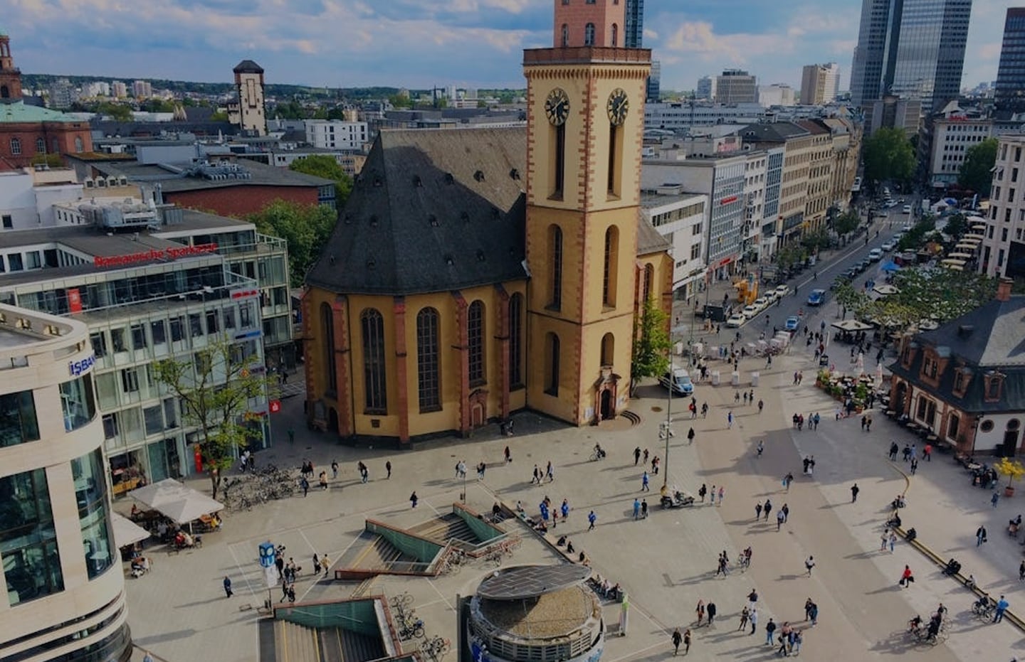 At the foot of St. Katharinenkirche stands the carefully modernised Telemann – a building where tradition meets innovation. Inspired by the visionary creativity of Georg Philipp Telemann, it embodies architectural excellence and enduring value – principles we proudly share. In this prime central Frankfurt location, a forward-looking workspace awaits – one that blends quality, substance, and timeless aesthetics. A place designed to meet the needs of modern business.